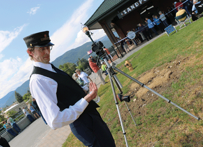 SANDPOINT — As officials gathered Saturday afternoon on the platform of the Sandpoint Depot to rededicate the 1916 depot, a grain train rumbled past, the honking of the horn and clanking of the bells mixing with the laughter and applause from the crowd.