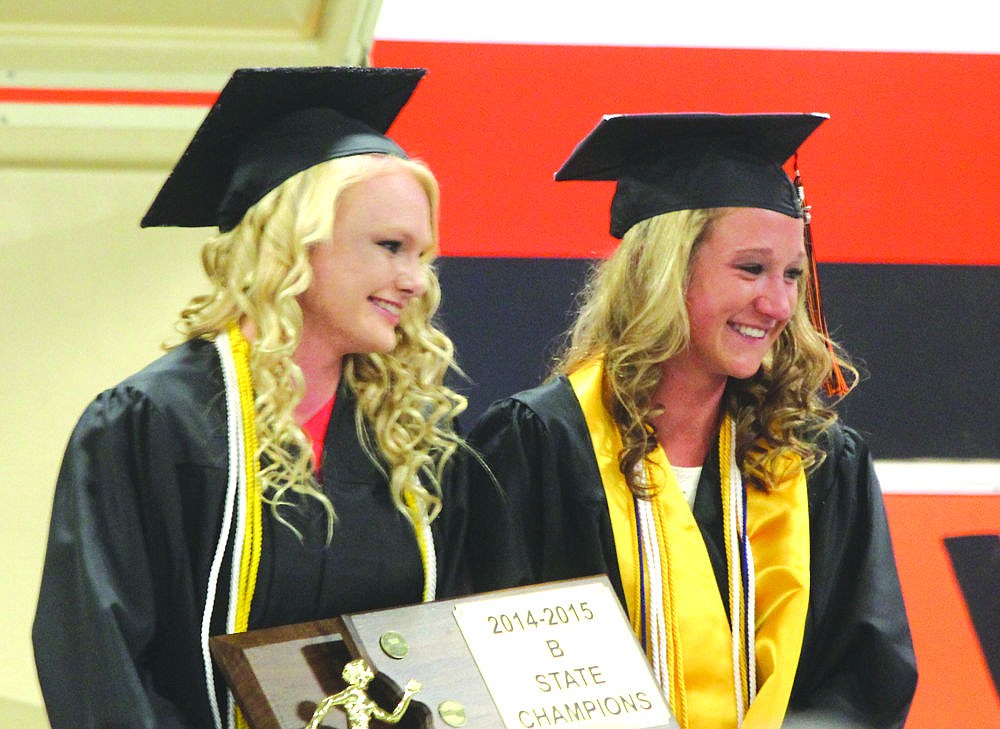 Seniors Kayla Holmes (left) and Hailey Phillips (right) were honored for their academic and athletic achievements during last week's Plains High School graduation. Both Holmes and Phillips were instrumental in the Trotters success over the past few track and field seasons.