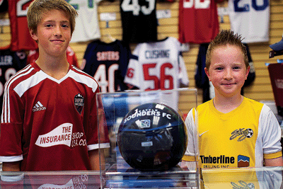Tyler Gasper, 11, volunteered his soccer ball — signed by Clint Dempsey of the Seattle Sounders — to be raffled off to raise money for the family of Coeur d’Alene Police Sgt. Greg Moore.