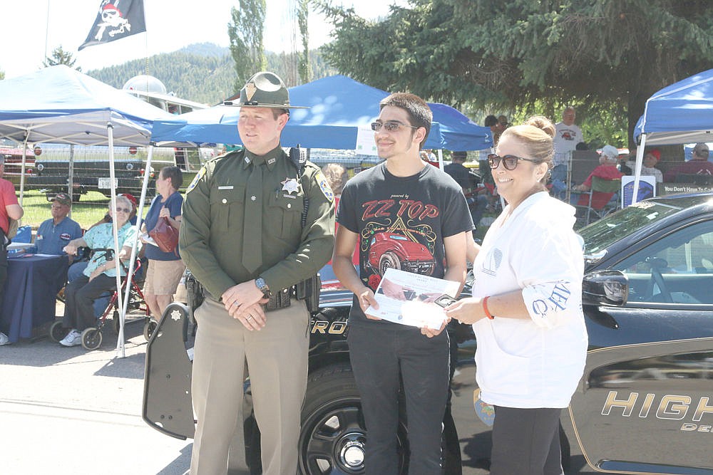Matthew Buchanan, center, receives an award for his dedication to safe driving practices.