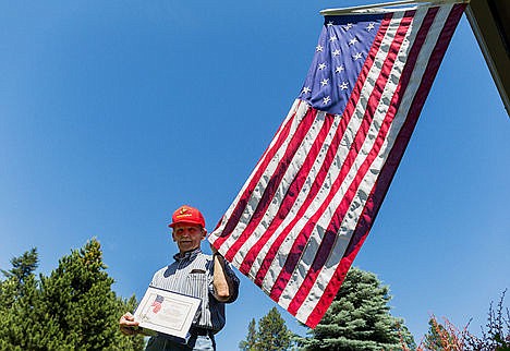 The Coeur d'Alene veteran proudly displays the American flag with 15 stars and stripes in his front yard.