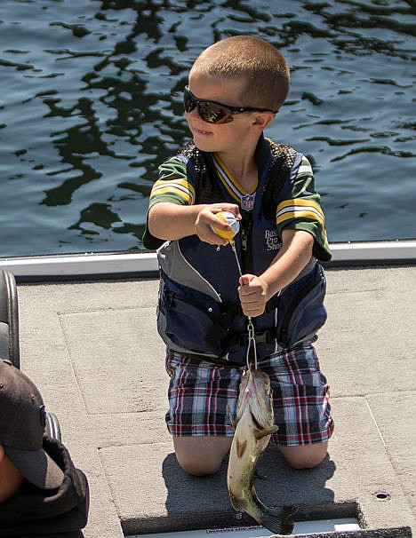 A fleet of about 40 boats with two-person teams and some with 12-and-younger teammates spent half of the day on the lake, hoping to find the winning catch. John Merriman of Post Falls said it was a nice day, but the recent hot weather may have affected the fish's appetites.