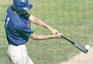 Erik Lauer with a bases loaded base hit scoring one bottom of first inning. First of a doubleheader vs. Kalispell Lakers June 17. (19-7, Loggers)