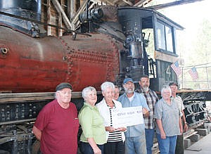 Faye Schoknecht of the Schoknecht Family Fund donated $10,000 to the Heritage Museum in Libby Wednesday. The donation was to help the museum restore the old Shay locomotive and the barn in which it is currently stored.