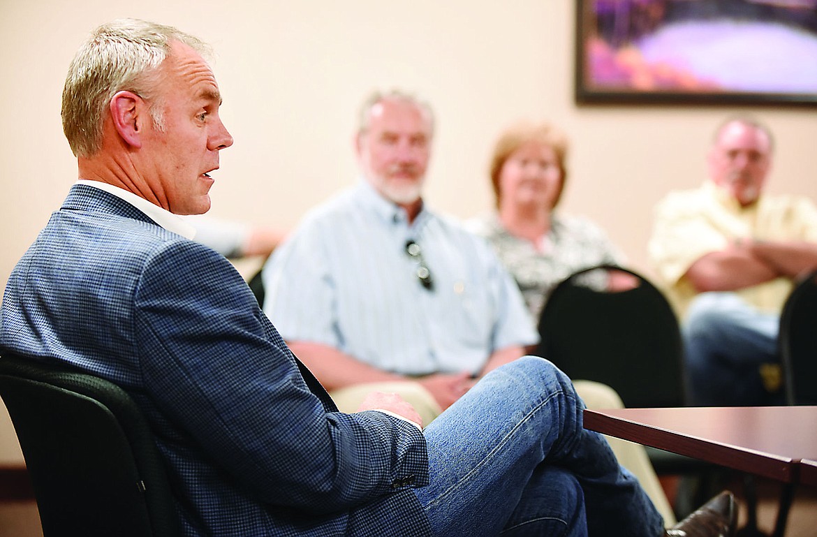 U.S. Rep Ryan Zinke, R-Mont., leads a town hall meeting on Saturday evening, June 6, at Freedom Bank in Columbia Falls. (Brenda Ahearn/Daily Inter Lake)