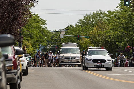 At 11 a.m. on Sunday - which was Go Skateboarding Day 2015 - the traditional grinding, roaring of wheels and scraping of boards down Sherman continued as an official parade. A Coeur d'Alene Police Department cruiser led the way for safety.