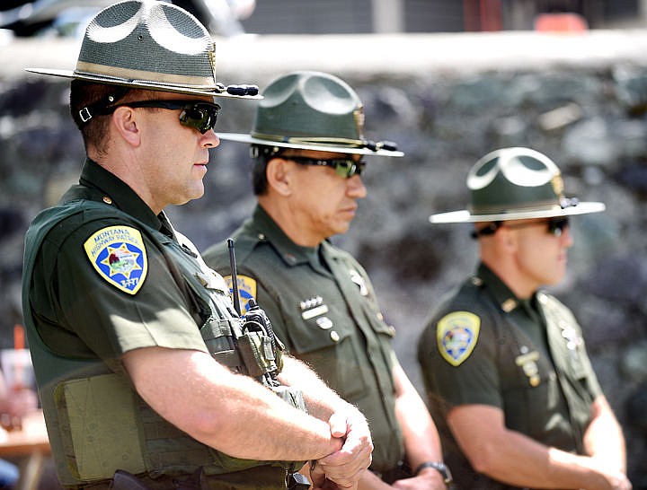 From left, Jeremy Lee, Sgt. Roy Christensen and Rick Mehring of the Montana Highway Patrol will be part of increased DUI patrols in the Flathead Valley. Lee is with the Safety Enforcement Traffic Team that will be in the Flathead Valley from June 30 to July 7. (Brenda Ahearn/Daily Inter Lake)