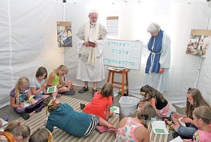 The synagogue elementary school with "Rabbi" Steve Johnson and his assistant Patty Johnson during Libby Christian Church's vacation Bible school. June 18, 2015.