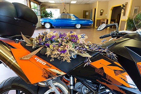The impact of Shawver's loss is evident throughout the business. His photo is prominently displayed in the office and on the company's marketing materials. His motorcycle with a flower arrangement on it is parked in the neatly-kept and Western-themed front office where people drive in on a laminate floor to receive an estimate on their vehicles.