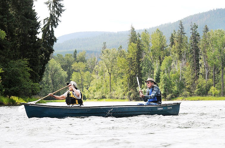 Wes and Karen James of Ferndale paddle down the Swan River on Tuesday.