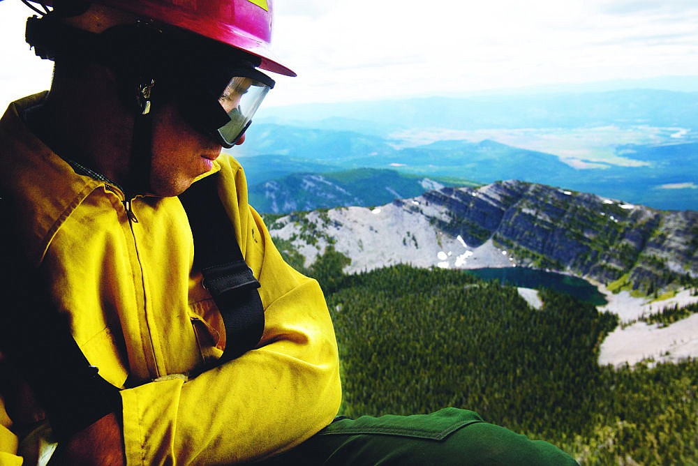 Joe Renda, a DNRC member, looks out over the Clark Fork River Valley during a helicopter training class.