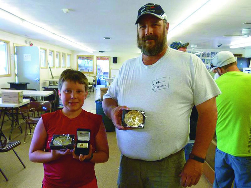 Alfred Jermyn (junior winner) and his father James Jermyn (Class A Winner) show off their awards in Kalispell.