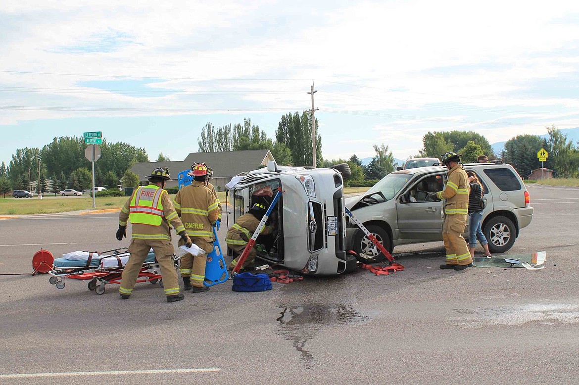 Kalispell police and fire departments responded Thursday morning to a crash near Glacier High School, where a Ford Escape struck and flipped on its side a Subaru that had attempted to take a left turn across traffic.