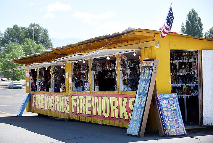 Details of a fireworks stand in Evergreen on Thursday, June 25. On Wednesday, June 24, fireworks stands opened and firefighters from around the Flathead Valley gathered for a press conference to warn residents about the dangerously dry conditions and to urge people not to use fireworks this year. (Brenda Ahearn/Daily Inter Lake)
