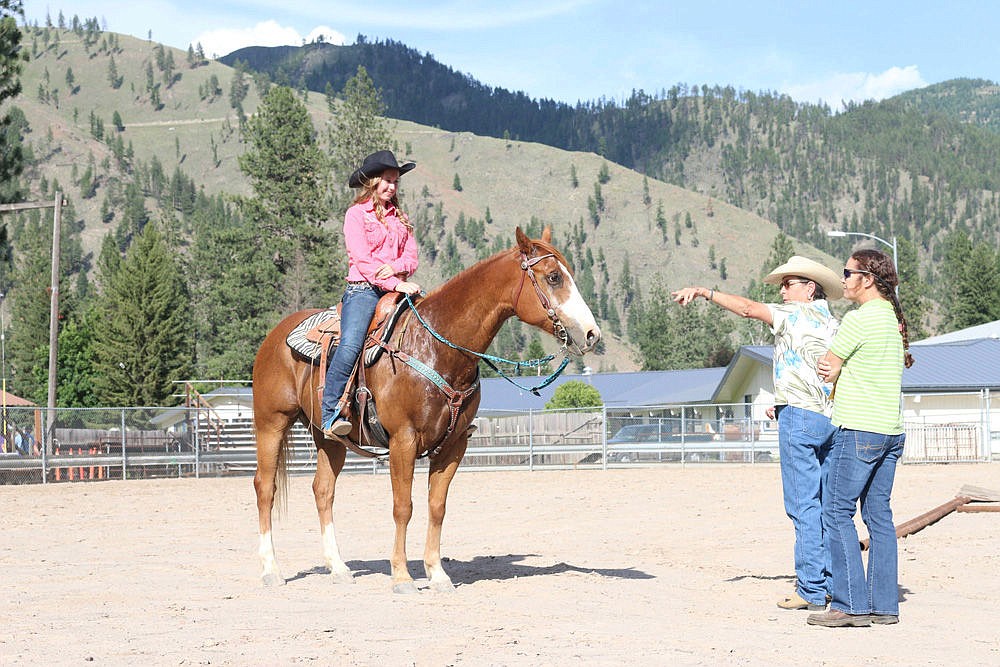 Jonna Rae Warnken, left, receives instructions from the judges during tryouts for the 2015 Mineral County rodeo princess.