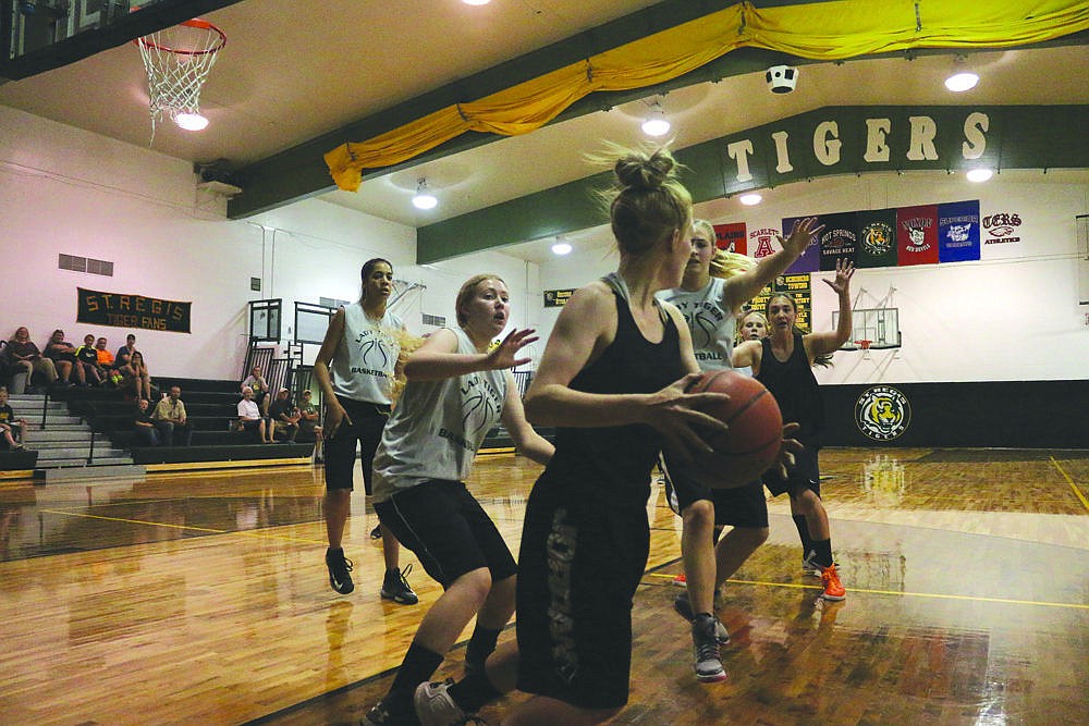 Trotters guard Kimberly Earhart looks for an open teammate during the team's tourney in St. Regis.