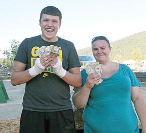 Not a bad day at the office for Michael Curtiss and Sarah Carpenter, Bull and Bullette of the Woods, Logger Days 2015.