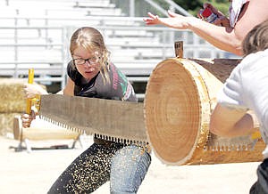Emily Grotbo teamed with Clay Stevenson in the Jack and Jill doublebuck saw competition.
