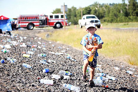 Just around the corner, 10-year-old Ashton Loken of Coeur d'Alene set up his own free drink station for the runners and the spectators.