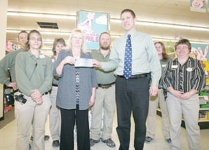 Shopko Foundation awards $2,000 to the Libby School District with Jamie Abrahamson, left, Lila Simpson, Cindy Beaulieu, Shopko Manager Marion Craig, Mike Benda, Libby Elementary School Principal Ron Goodman, Cassidy Barber and Karen Warner.