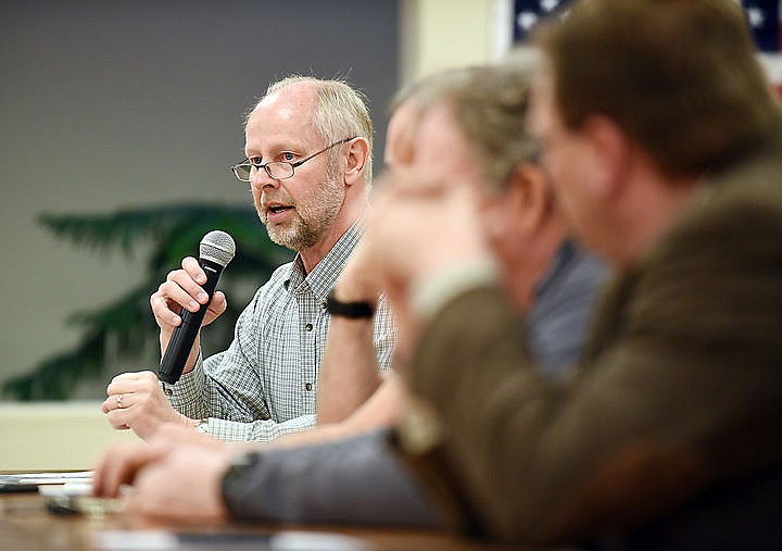 Rep. Keith Regier, R-Kalispell, speaks at a Town Hall forum at Sykes on Monday, March 2, in Kalispell. (Brenda Ahearn/Daily Inter Lake)
