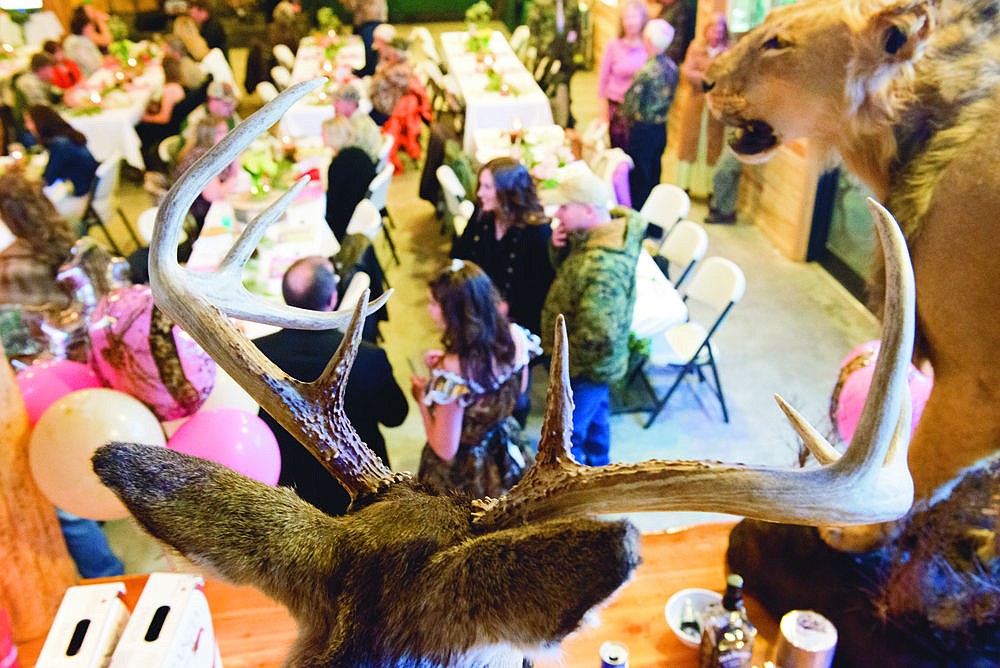 Attendees of the first annual "Camo Sweetheart Ball," at the Lakeside Motel and Resort in Trout Creek, mingle before dinner.