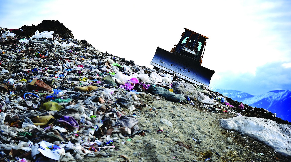 A bulldozer moves trash in cell 4A at the landfill on Feb. 24, north of Kalispell. The cell is nearly full and Flathead County Solid Waste Operations Manager Jim Chilton said he expects to begin filling cell 4B in April or May.