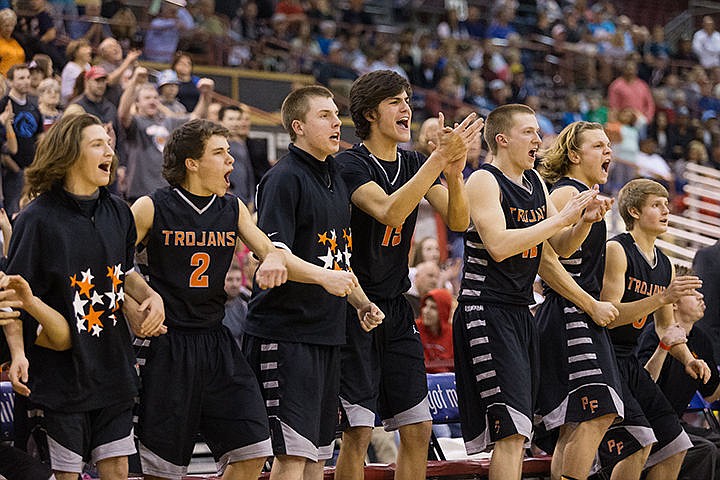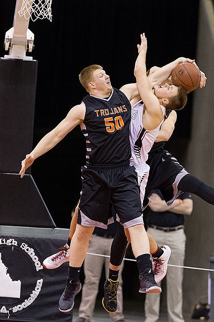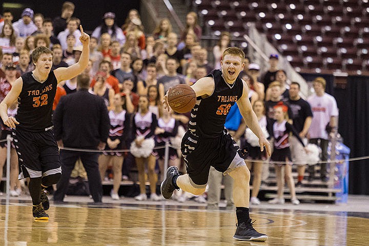 "We knew two guys weren't going to beat us,” said Post Falls junior guard Max McCullough, who scored 19 points as the Trojans outlasted Highland of Pocatello 67-62 in overtime in the championship game of the state 5A boys basketball tournament Saturday night at the Ford Idaho Center.
