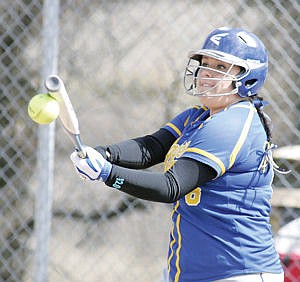 Junior Staci Regh's base hit scores 1 (10-0 Loggers) bottom of the 4th vs. Timberlake Tigers 4-5-14