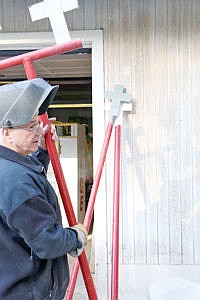 Over the years King has modified his process to make the crosses easier to repaint. “I weld a little plug on the end of the post and then weld the cross right on top of it instead of splitting the post and putting the cross down in there,” he said.