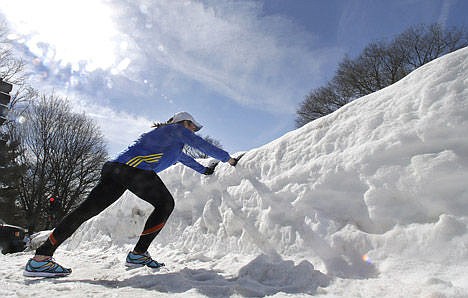 "I'm so sick of sliding around on the snow and ice," said Peter Horning, 30, a chemist who lives in Boston's Chinatown. "It's way worse than running on beach sand. It's exhausting. Every three steps count for seven."