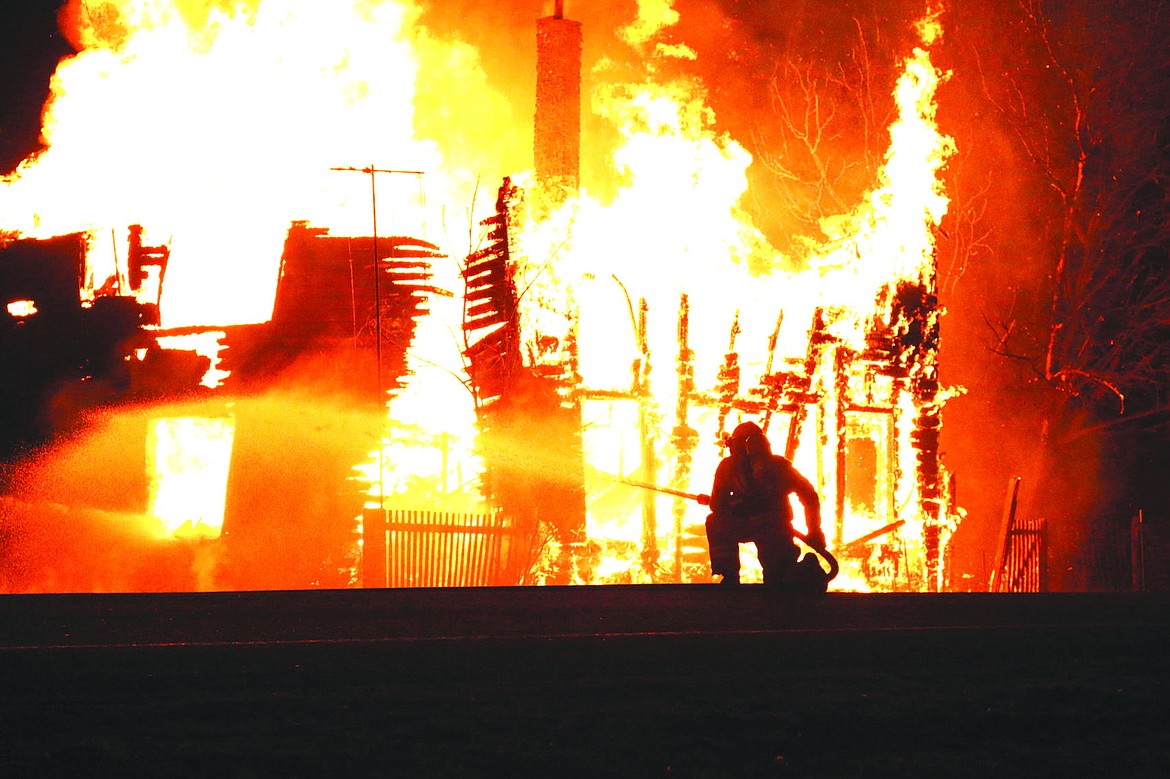 A firefighter douses a two-story house in Paradise. The blaze occurred on Monday, March 9, there were no injuries.