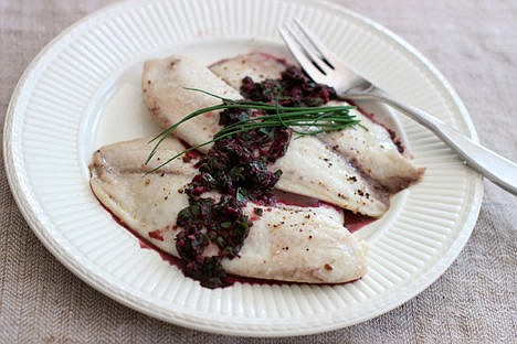 Once the fish is cooked, place the filets on serving plates, then spoon the chimichurri over the hot fish.