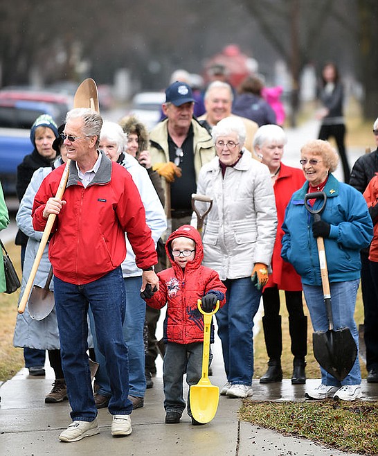 After brief remarks from Flathead County commissioners and Lois Katz, the Agency on Aging Advisory Council chairwoman, Flathead County Administrator Mike Pence counted down from three and let the seniors put their stake in the property.