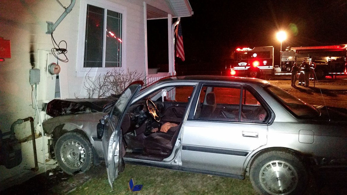 Residents of an Alpine Lane home awoke early Thursday morning to a loud crash. They found that a car had smashed into the side of their house, hitting utility lines and starting a small fire.
