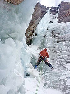 “It was really fantastic climbing; very classic fun ice with a really dramatic finish,” Coldiron said. “There were a couple of cave belays at the top where the ice and rock formed perfect caves that were just amazing spots. Climbing out of those onto overhanging ice was really dramatic and fun,” he said.