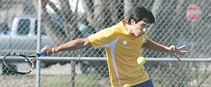 Walter Briones vs. Troy's Dominic Chiaverini at no. 1 singles March 27, 2015.