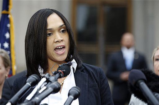 Marilyn Mosby, Baltimore state's attorney, speaks during a media availability, Friday, May 1, 2015 in Baltimore. Mosby announced criminal charges against all six officers suspended after Freddie Gray suffered a fatal spinal injury in police custody. (AP Photo/Alex Brandon)