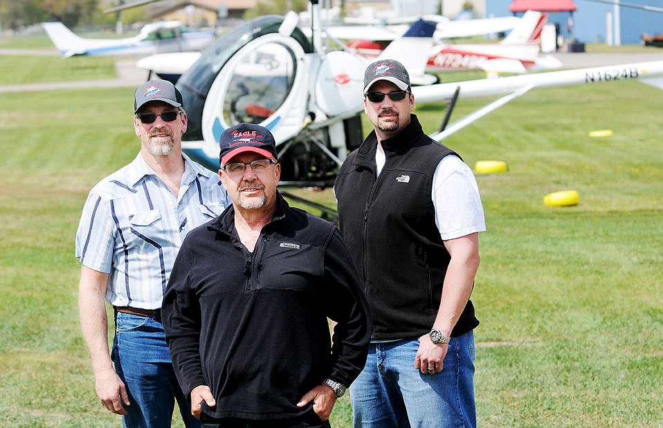 Red Eagle Aviation's new leaders are Dave Hoerner, front, Mark Tudahl, back left, and B.J. Holman. (Aaric Bryan/Daily Inter Lake)