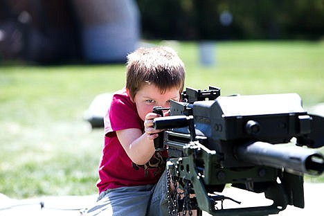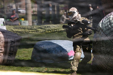Ward, of Coeur d'Alene, his brothers and soon-to-be sister-in-law tried paintless paintball for their first time Saturday in McEuen Park. The event was hosted by the Idaho Army National Guard and included four-on-four tournaments as well as a free hotdog lunch, recruitment information, machine gun displays, Warrior Olympics and a climbing rock wall.