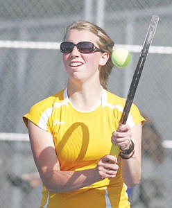 Katie Alspaw vs. Bigfork's Abby Fraley at No. 4 singles May 1.