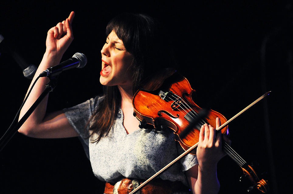 Amelia Riley Thornton of Dean and Riley belts out Dolly Parton's "Jolene," during the second night of the 2015 Majestic Valley Arena Country Showdown on Saturday night. (Aaric Bryan/Daily Inter Lake)