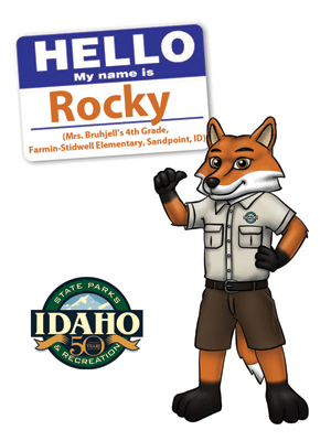 Rocky, an adventurous red fox who grew up along the Pack River, was created by a Farmin Stidwell student as part of a statewide IDPR contest to name the department’s new mascot.