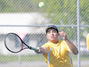 Giovanni Cano teamed with Gabe Peck vs. Bigfork's George Gibson and Ben Russell at No. 2 doubles May 1.