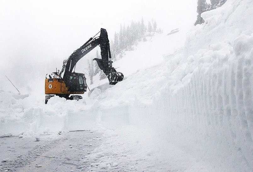 An excavator takes a bite out of snow on Glacier National Park's Going-to-the-Sun Road near Logan Pass on Monday. (Aaric Bryan/Daily Inter Lake)