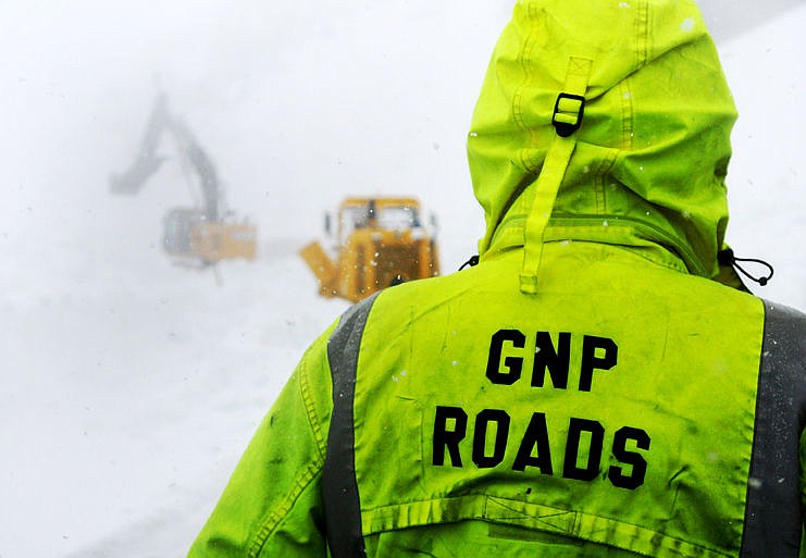 A blower and excavator remove snow from Going-to-the-Sun Road between Oberlin Bend and Logan Pass in Glacier National Park on Monday. (Aaric Bryan/Daily Inter Lake)