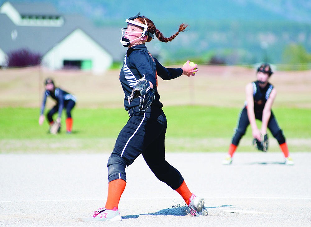 Kassidy Kinzie pitches for the Plains 14U team during Saturday's game against Charlo.