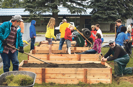 Such was the case at Farmin Stidwell Elementary School Wednesday as students from the Lake Pend Oreille School District’s multi-age experiential learning pilot program literally got down and dirty with the help of community volunteers to install raised garden beds.