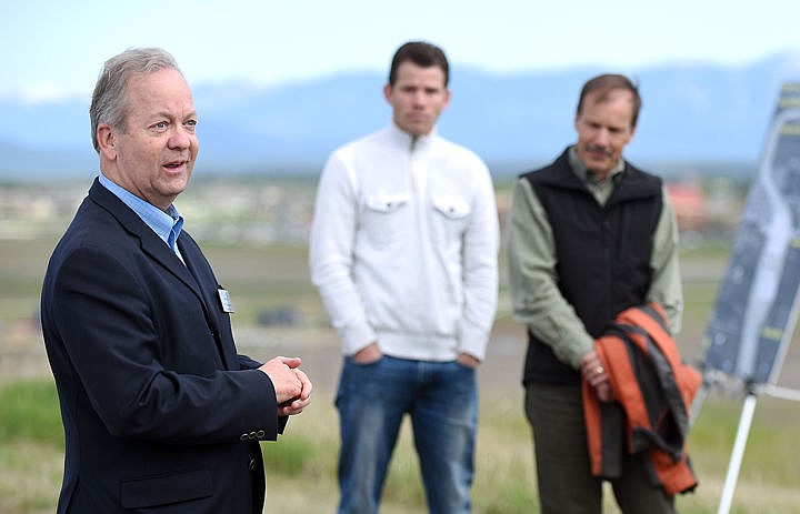 President of the Chamber of Commerce Joe Unterreiner talks about the importance oft he Bypass for Kalispell at a gathering of city officials with Governor Steve Bullock on Tuesday, May 19. (Brenda Ahearn/Daily Inter Lake)