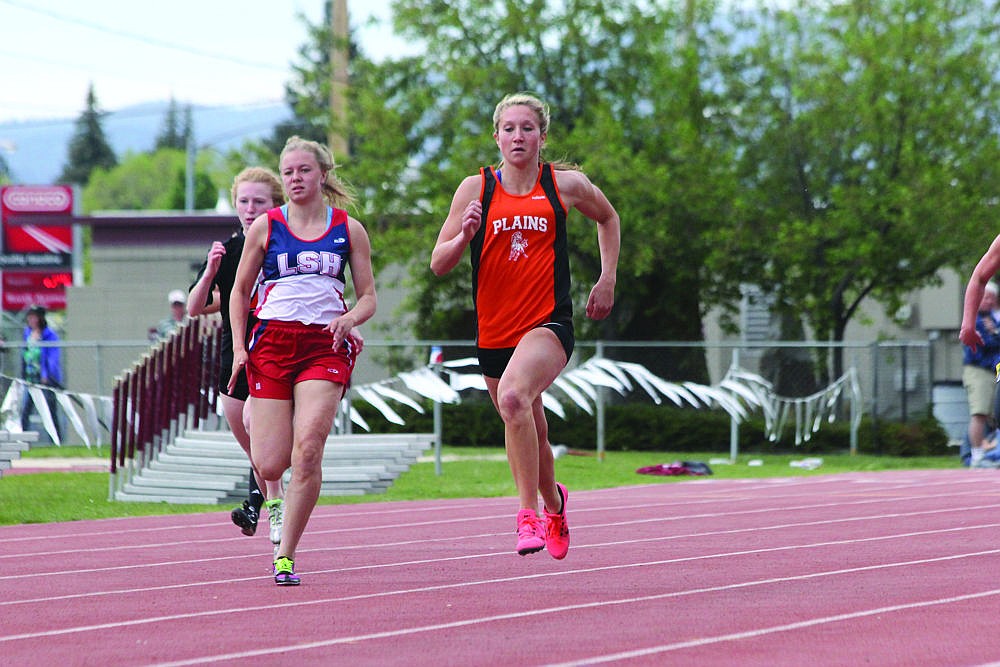 Plains senior Hailey Phillips (far right) competes last week at the Western B Divisional Meet at Dornblaser Field in Missoula.